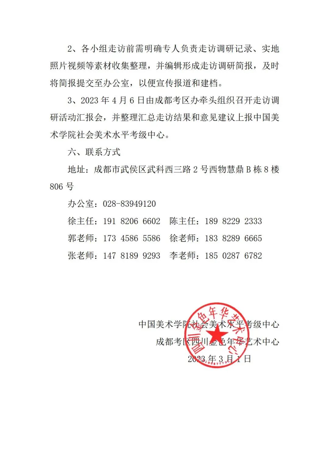 关于开展走访调研中国美术学院社会美术水平考级成都地区考点工作的通知
