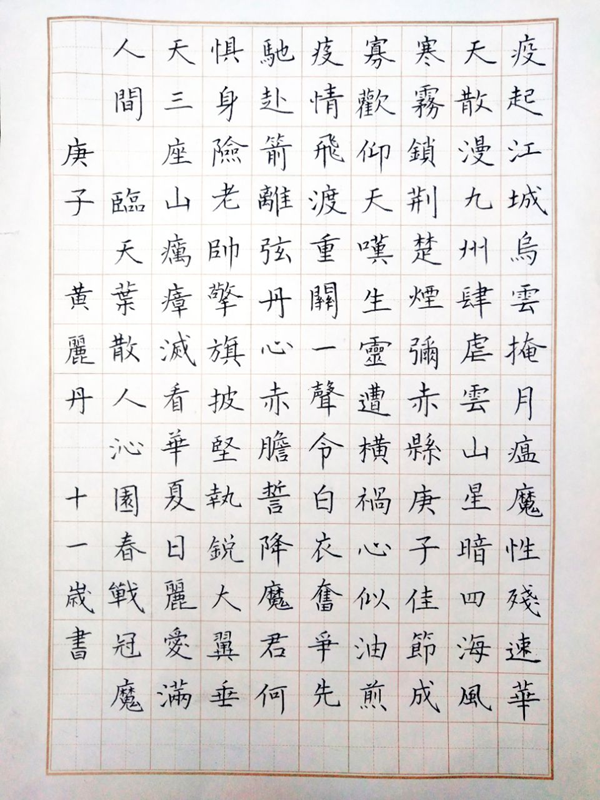 参展作品:硬笔书法《战冠魔》