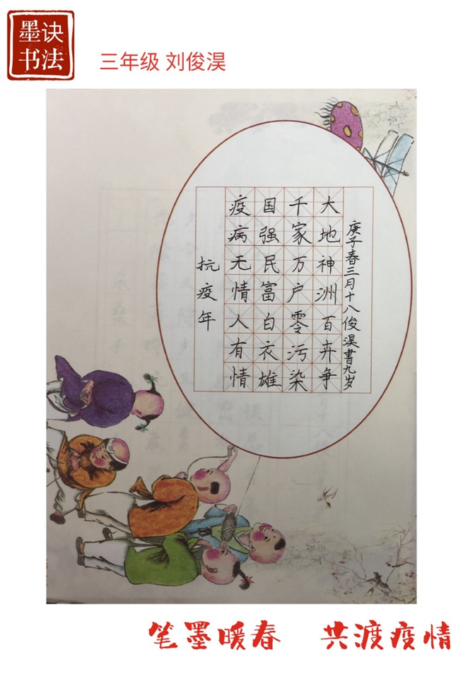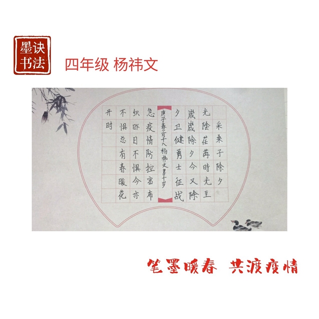 参展作品:硬笔书法《笔墨暖春 共渡疫情 》